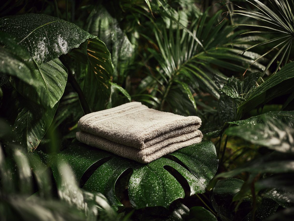 [PRODUCT] nestled among lush green plants and tropical leaves, dappled natural light, humidity visible in air, organic freshness, sustainable aesthetic, life and growth symbolism, botanical studio setup, verdant backdrop.