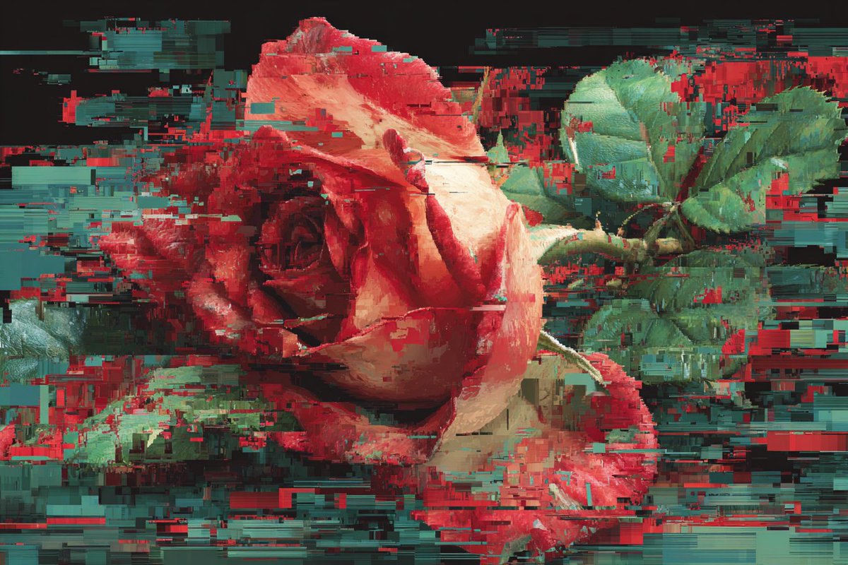 A Data Mosh Bio-Digital Fusion of [SUBJECT]. Organic forms merging with digital glitches and pixelation. Use [COLOR1] and [COLOR2] to highlight the interplay between the natural and the artificial, with prominent compression artifacts.