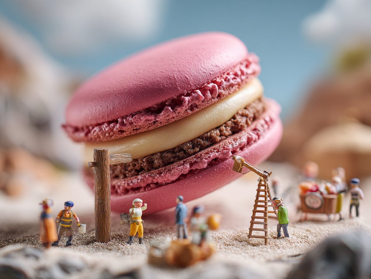 [PRODUCT] as giant object in miniature scene, tiny figures or landscape elements around it, tilt-shift effect, playful scale distortion, whimsical advertising, model-making aesthetic, imaginative perspective.